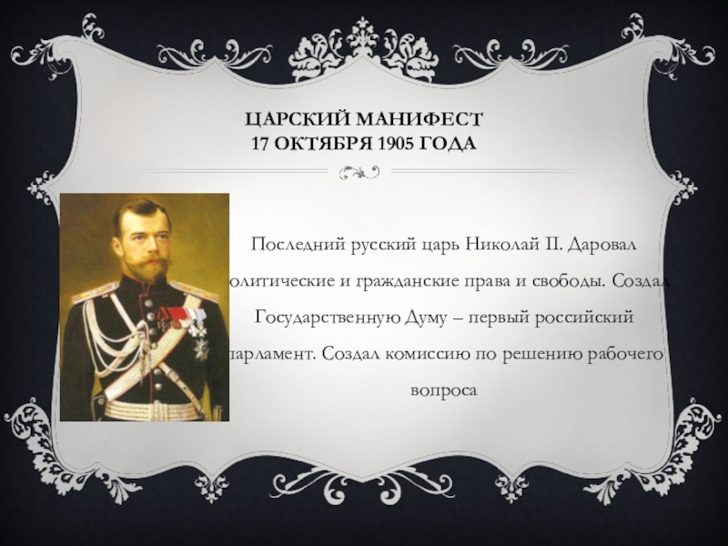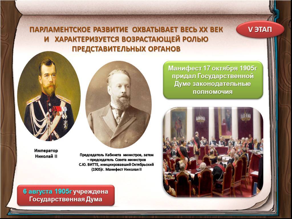 МАНИФЕСТ 17 ОКТЯБРЯ 1905 ГОДА И УЧРЕЖДЕНИЕ РОССИЙСКОГО ПАРЛАМЕНТА