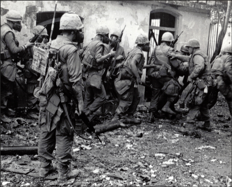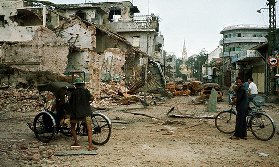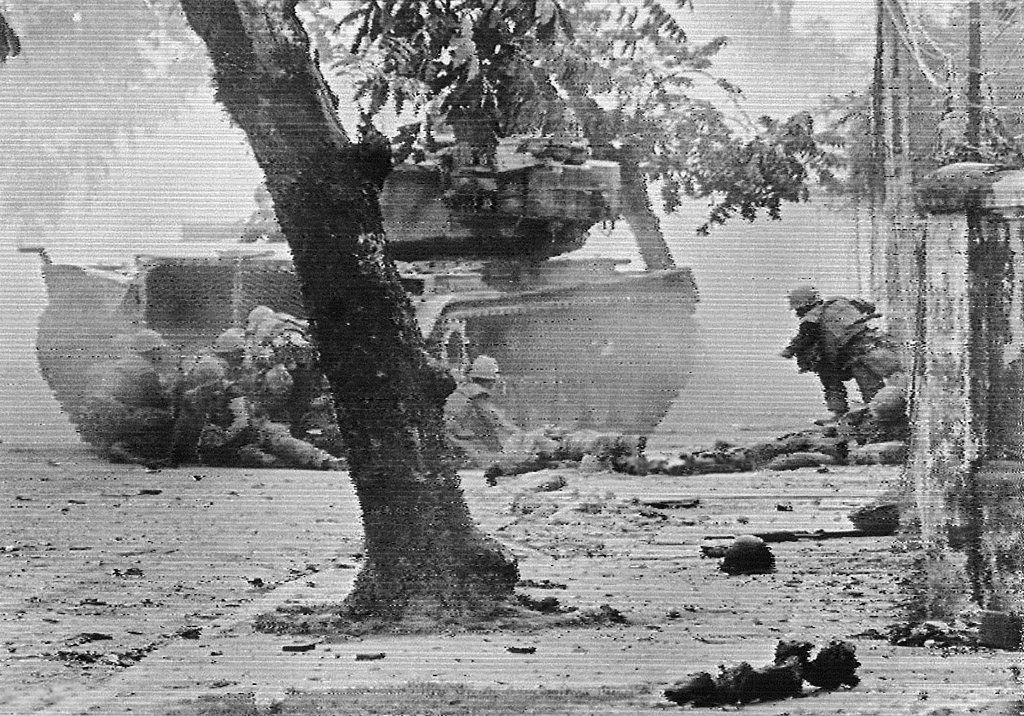 Битва при Хюэ, которая бушевала с 30 января до начала марта, была в центре Тетского наступления. В то время как другие подвергшиеся нападению города были очищены от коммунистических сил в течение нескольких дней, Хюэ был захвачен почти полностью, оставив лишь небольшие группы американских морских пехотинцев и южновьетнамских солдат, чтобы в конечном итоге отразить коммунистов в жестоком месячном бою.