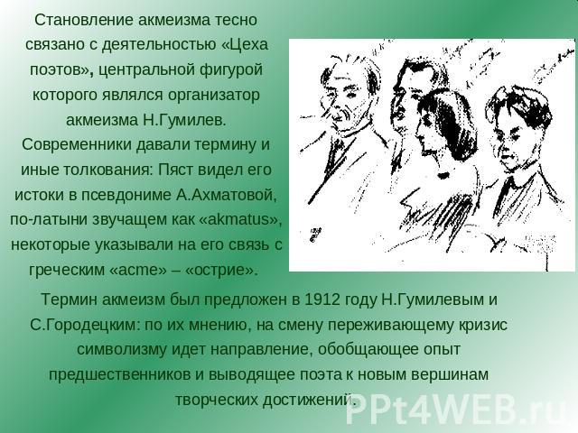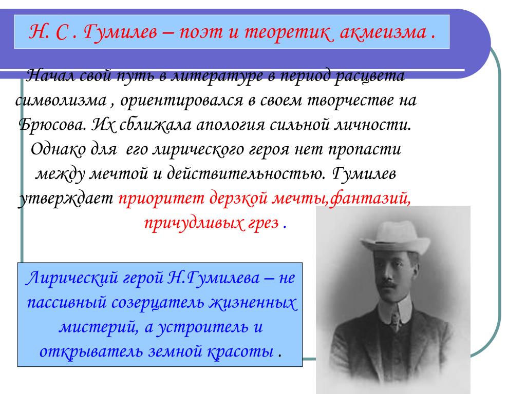 Следующим переломным моментом в творчестве Гумилева становится создание «Цеха поэтов» и собственной эстетической программы, акмеизма.