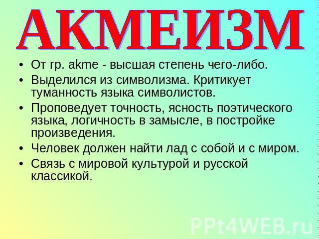 Акмеизм. Анна Ахматова: основные черты поэзии