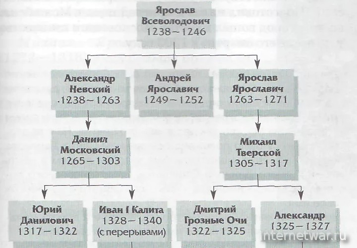 Выдающейся личностью русской истории XIII века, то есть периода феодальной раздробленности и монголо-татарского ига, стал князь Александр Ярославич Невский — правнук основателя Москвы Юрий Долгорукого. Александр был переяславским князем, несколько раз становился новгородским правителем и последние 10 лет жизни занимал два основных великокняжеских престола — во Владимире и Киеве.