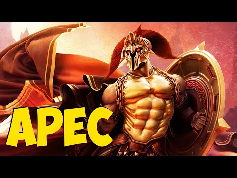 Затем Арес противостоит Аполлону, который едет на своей колеснице. Арес едва не промахивается по лезвию Аполлона, когда оно царапает переднюю часть его шлема, когда он вовремя отклоняется назад. Арес быстро бьет молотом по земле с такой силой, что Аполлон теряет равновесие и падает с колесницы.