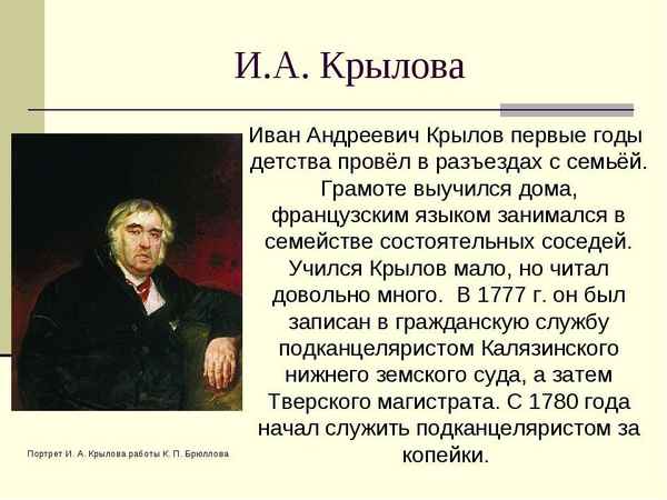Краткая биография Крылова — 3 варианта ~ Проза (Школьная литература)