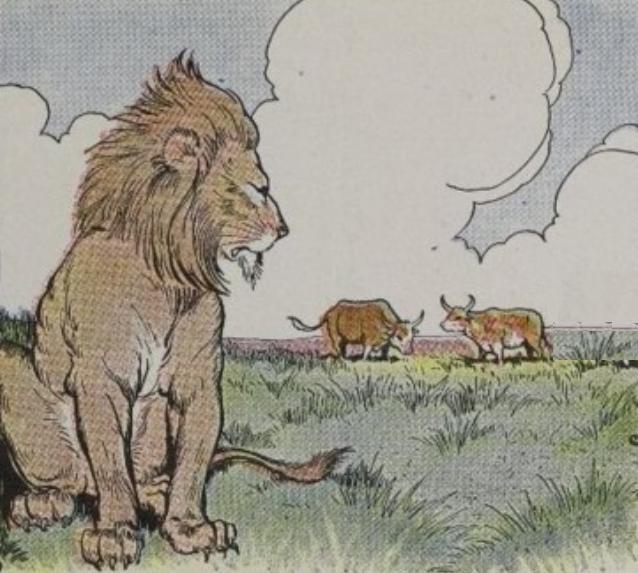 Пришли, пришел и Лев; он, когти разминая И озираючи товарищей кругом, Дележ располагает И говорит: «Мы, братцы, вчетвером». И на четверо он оленя раздирает. «Теперь, давай делить! Смотрите же, друзья: Вот эта часть моя По договору; Вот эта мне, как Льву, принадлежит без спору; Вот эта мне за то, что всех сильнее я; А к этой чуть из вас лишь лапу кто протянет,