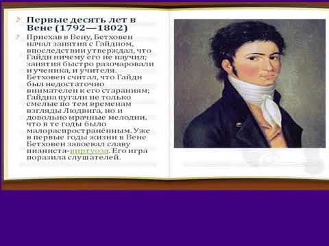 Родился в семье заурядного музыканта в Бонне. Пьяница-отец, обнаружив у сына талант, начал обучать его игре на фортепиано. Жестоко расправляясь с ним при малейших неудачах, он чуть было не отбил у мальчика вкус к музыке. К счастью, необыкновенно одаренным ребенком вскоре заинтересовались другие боннские музыканты. В 1792 году после смерти отца, его посылают в Вену, где он учится композиция у Гайдна и Сальери. В этот период ему значительно помогли венские аристократы-меценаты — Вальдштейн, Лихновский, Лобковиц, Эстергази, которым он впоследствии посвящал свои произведения. В 1795 году Бетховен с триумфом входит в музыкальную жизнь как пианист-виртуоз и композитор. Год спустя он отправляется в Прагу, Дрезден, Будапешт и Берлин. Это было самое далекое путешествие Бетховена, который до конца своей жизни, никогда больше не покидал Вену.