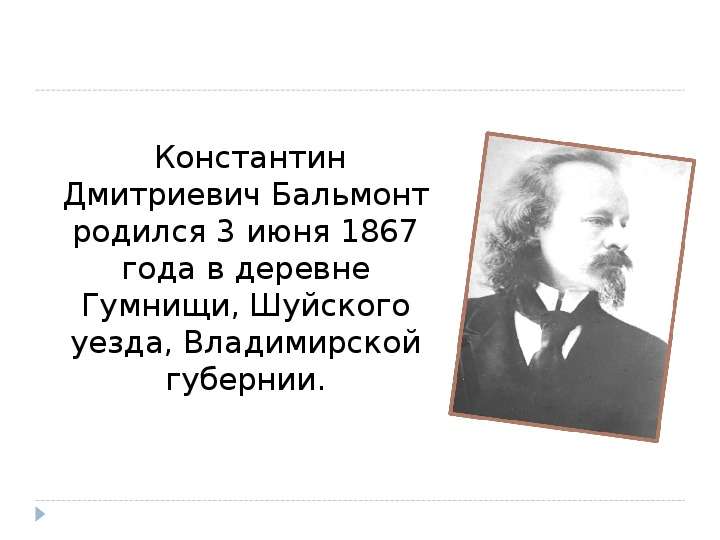 Презентация «Творчество и интересные факты из жизни К. Д. Бальмонта»