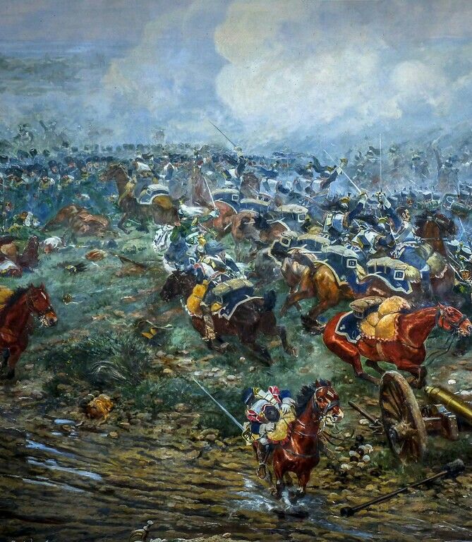Но он был там и собирался внести свой вклад. В битве наступает момент, когда его полк сражается с батальоном французской тяжелой кавалерии. Наш парень бросается прочь и ударяет мечом по шпаге француза. Француз кричит: «Vive l’Empereur!» — его боевой клич.