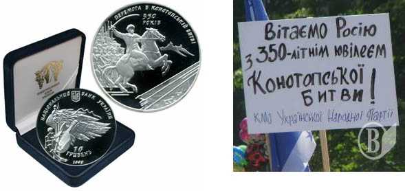 Юбилейная монета победы над русскими при Конотопе. Поздравления россиян с 350-летием битвы при Конотопе во время выступления президента Ющенко