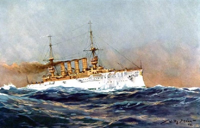 Примечательно, что, несмотря на стрельбу вслепую, так как немецкие корабли были скрыты мысом, второй залп из Канопус едва не попал в основание воронки Гнейзенау . спас всю английскую эскадру от уничтожения.