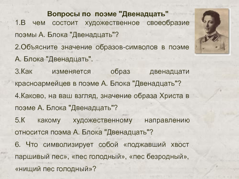 О хитросплетениях судьбы Александра Александровича мы уже разговаривали в прошлом учебном году, так что на этот раз не будем досконально разбирать его биографию. Главное для нас — разобраться, как же так вышло, что к концу своей недолгой жизни Блок оказался чужим среди своих и почему поэма «Двенадцать» стала печальным, но закономерным итогом его неприятия современниками.