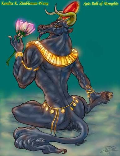 в египетской мифологии APIS или Hapi (альтернативно написано Hapi-Ankh ), был бы в районе Мемфиса.