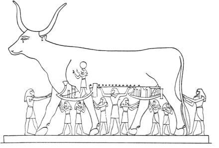 Мифы Египта говорили, что Нут (богиня неба) каждое утро преображалась в корову и рожала бычка Аписа. До вечера этот бычок становился взрослым, и богиня делала его своим мужем. Апис и Мневис посвящались Осирису, считались его быками. По верованиям жителей Египта, Апис – бык луны, а Мневис – бык солнца. При царствовании Птолемеев Апис и Осирис слились в единого бога Сераписа.
