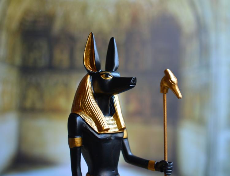 Анубис: древнеегипетский бог загробной жизни с собачьей головой мужчина. Считалось, что Анубис руководил процессом смерти и был тесно связан с мумификацией, гробницами, кладбищами, собаками и подземным миром. Египтяне верили, что в кульминационный момент путешествия в подземный мир человека будут судить Анубис и его родственник Осирис,