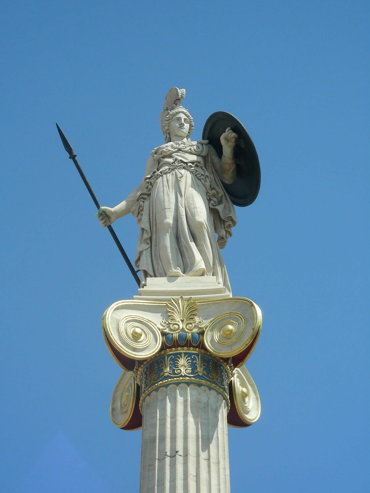 Афина — богиня защиты, дева мудрости и женских ремесел. Она богиня-воин, присутствующая во многих мифологиях мира. Поскольку греческий мир был патриархальным, ее статус богини-воина был ограничен.