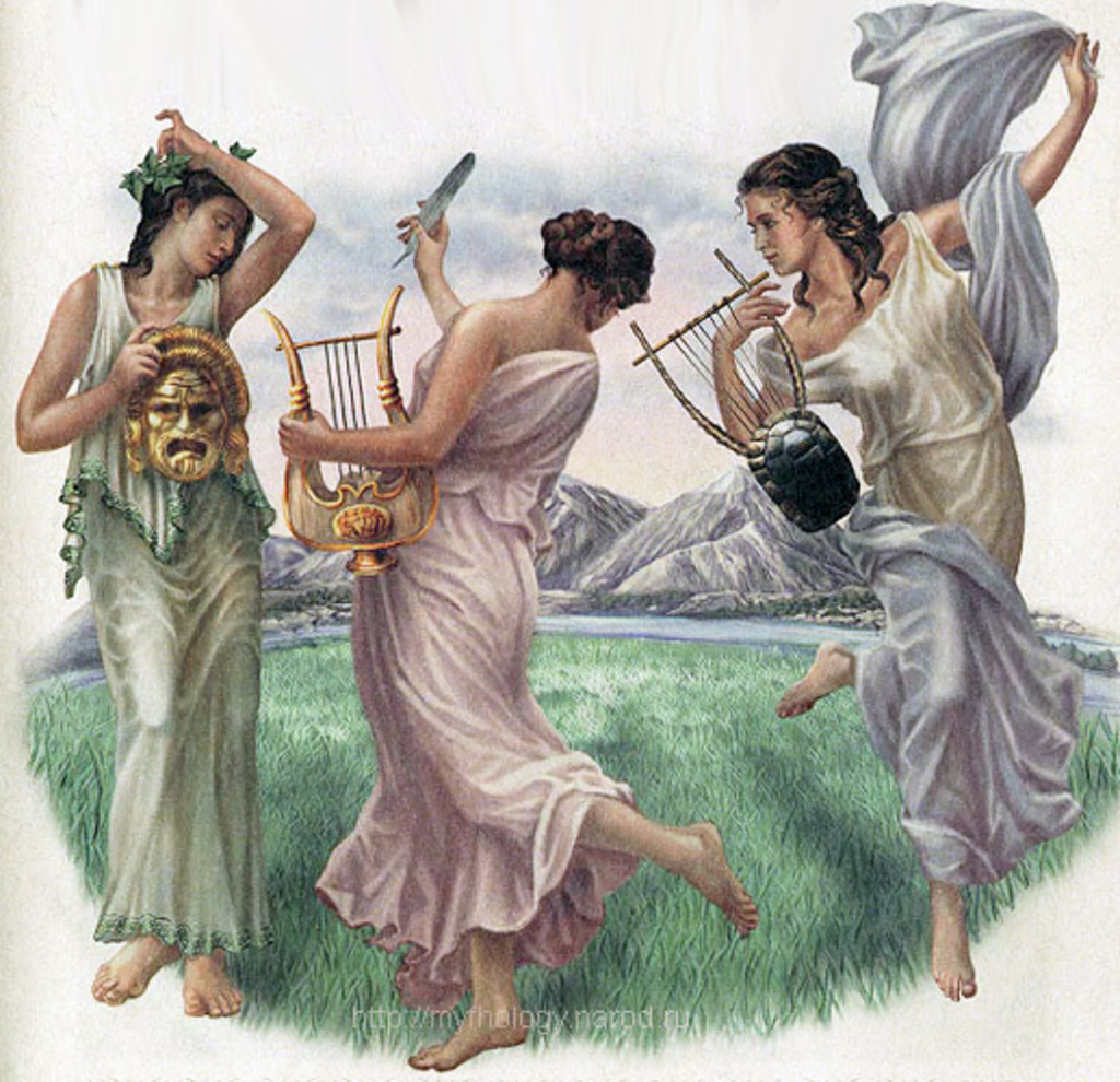 Музы — Девять греческих богинь музыки, песни и танца Первоначально музы были нимфами и богинями пустыни, и говорят, что их число выросло до двенадцати, когда они посетили гору Олимп.
