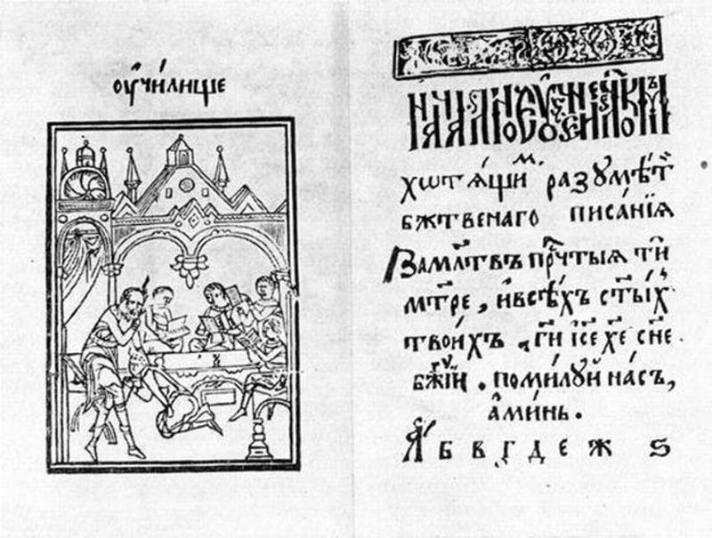 «Начальное учение человеком, хотящим разумети божественного писания». Первый букварь, напечатанный в Москве в 1634 году и составленный «трудами и тщанием многогрешного Василия Феодорова сына Бурцева и прочих соработников».