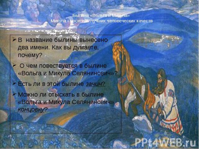 Русские былины – это отражение исторических событий, пересказанных народом, и как следствие, претерпевших сильные изменения. Каждый богатырь и злодей в них – это чаще всего реально существовавшая личность, чья жизнь или деятельность была взята за основу персонажа либо собирательный и очень важный для того времени образ.