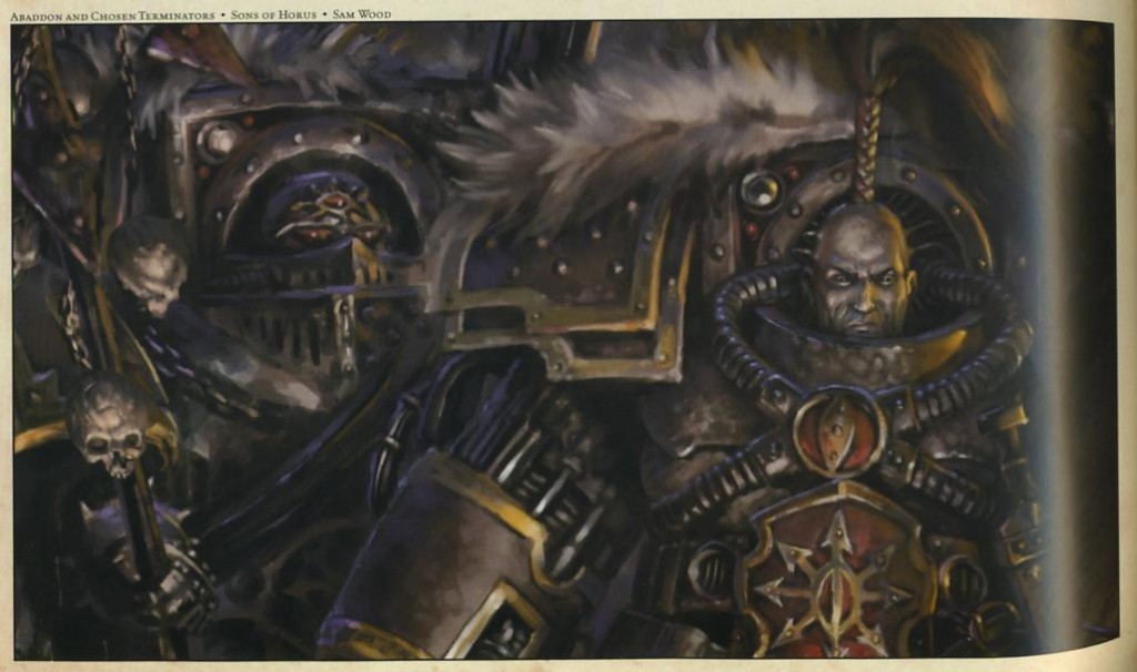 Когда Хорус пал от руки Императора, скорбь Абаддона была столь велика, что его ослабленный Хаосом рассудок полностью погрузился во тьму безумия и гнева. Тогда он полностью утратил все человеческое, что у него оставалось.