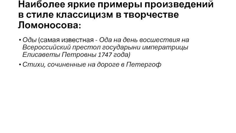 слайдовая презентация «Ода на день восшествия Елизаветы Петровны…» — типичное классицистическое произведение».