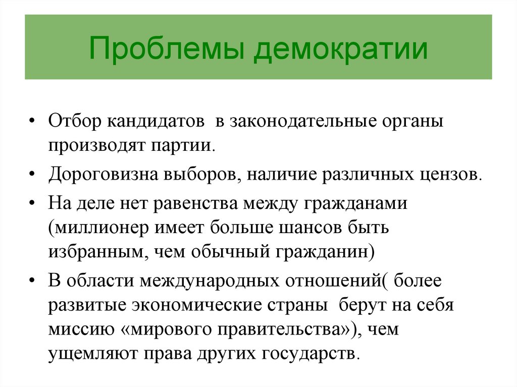 - Риск коррупции все еще существует . Когда кто-то избирается во власть, нет никаких гарантий, что он не воспользуется этой властью для личной выгоды. Возможно, они пообещали людям попытаться пройти голосование, но они могут не выполнить эти обещания после того, как будут избраны.