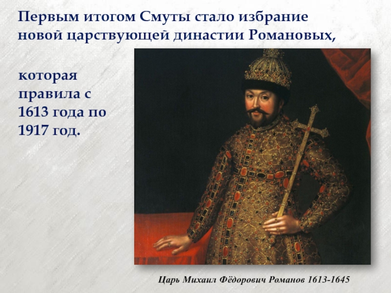 02.21 — (11 февраля по юлианскому календарю) Михаил Романов избран на царствование Земским собором (1613 1645), началась династия Романовых (1613 1917). Роль Земского собора повышается до Национального собрания (Боярская же дума остается совещательной) … Хронология всемирной истории: словарь