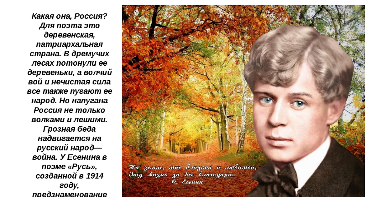 Известный великий певец русской природы Сергей Есенин, наверное, смог бы написать ещё больше прекрасных поэтических произведений, проникнутых любовью к России, если бы не ранний уход из жизни.