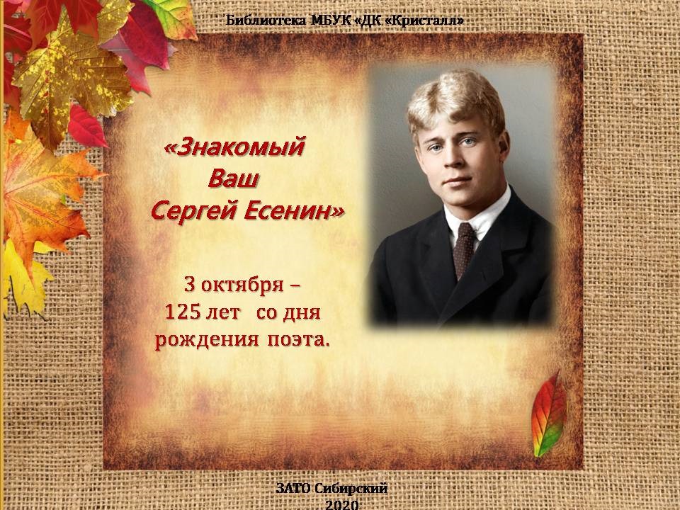 Будущий поэт Сергей Есенин появился на свет 3 октября 1895-го года по новому стилю.