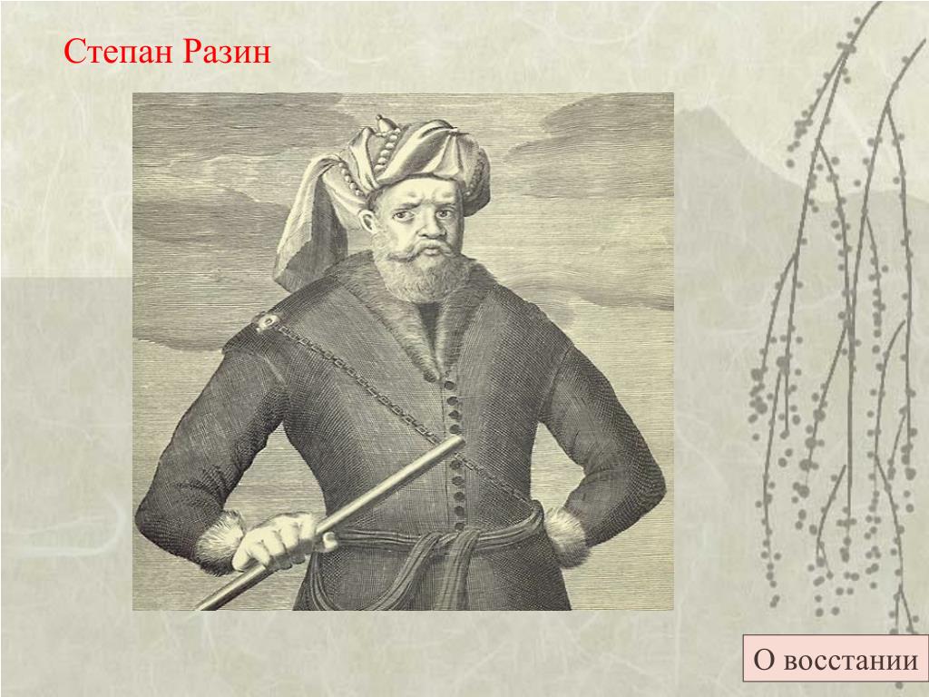 2. Подмена понятий — бунтовщик и разбойник Разин превратился в народного защитника, что в корне неверно, ибо он им никогда не был. Стенька был казачьим атаманом, который после казни старшего брата за измену (заслуженно между прочим) решил жить «на волю», и после нескольких удачных походов возомнил себя неким царем, которому подвластны горы. Он провел отличную подготовку к восстанию, но Симбирск и несколько тысяч оставшихся верными присяге стрельцов сломали усмешку Стеньки, и вскоре он был схвачен и казнен. Сами разинцы учинили настоящий террор на оккупированных землях (на картинке об этом ни слова). Они чинили разбой и не гнушались убивать попов (после чего и сам Стенька был предан анафеме), в общем, творили зло. И это неудивительно, ведь костяк его войска составляли беднейшие казаки (голытба), не имевшие ничего. Разин был хитрым и коварным главарем разбойничьей шайки, потрясшей тогдашнее русское общество (и тому была причина).