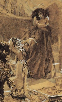 Однако его хандра рассеивается, когда он видит где-то внизу радостное копошение. Это подготовка к свадьбе: Гудал, местный князь, женится на своей единственной дочери.По старинной грузинской традиции невеста в ожидании жениха должна танцевать на крыше дома, устланной коврами. Эта невольная аллюзия с танцем библейской Саломеи особенно вызывает у читателей Лермонтова. Демон — краткое содержание стихотворения тем не менее дает нам возможность передать некоторые нюансы — вырывается из плена равнодушия. Ведь если еврейская царевна просила у головы Предтечи его танец, то царевна Тамара своими легкими движениями пробуждала страсть падшего ангела.