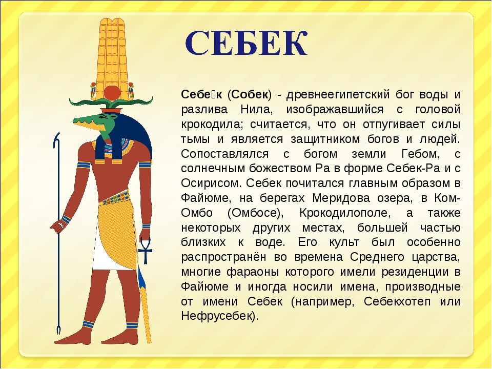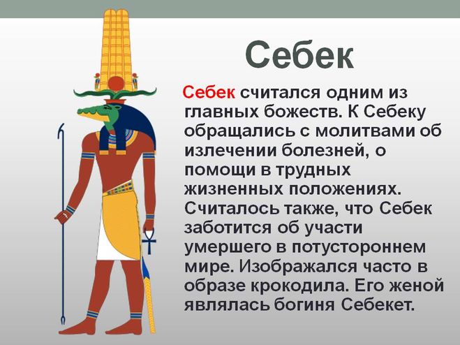 Себек – в египетской мифологии бог воды и разлива священной реки Нил.