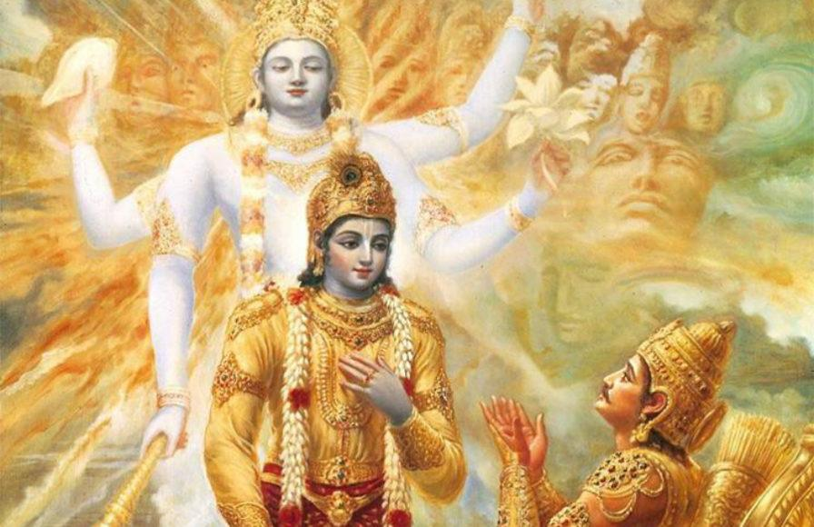 Бхагавад-гита — священное писание на санскрите, часть Махабхараты. Все повествование писания состоит из диалога между Арджуной и его проводником, Кришной.