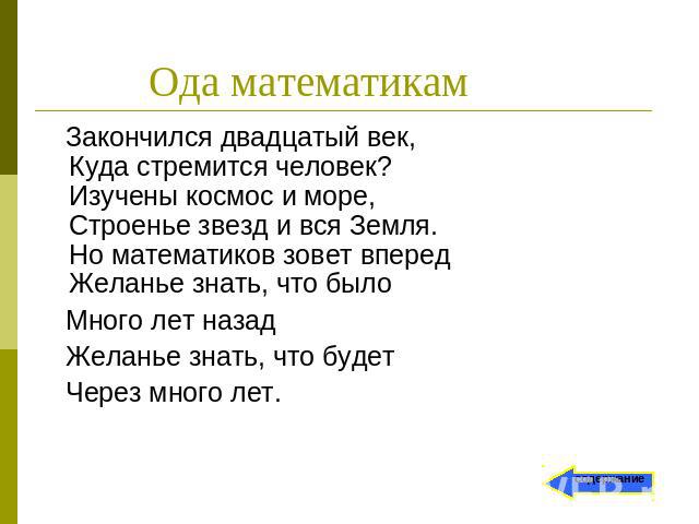 «Вечернее размышление» и «Ода,
