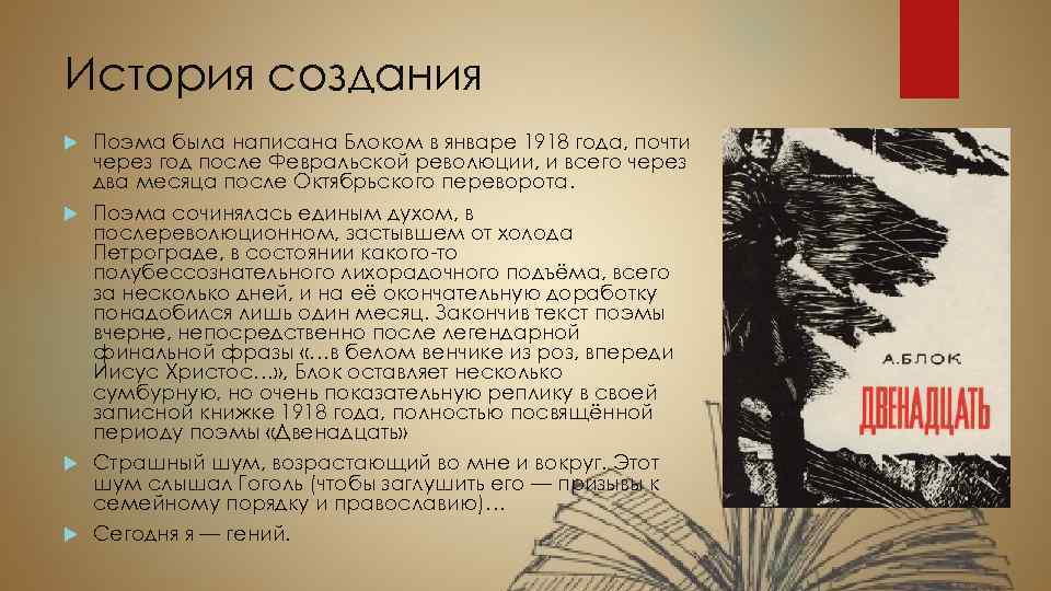 А. Блока, текст поэмы, анализ, главные герои, главная идея