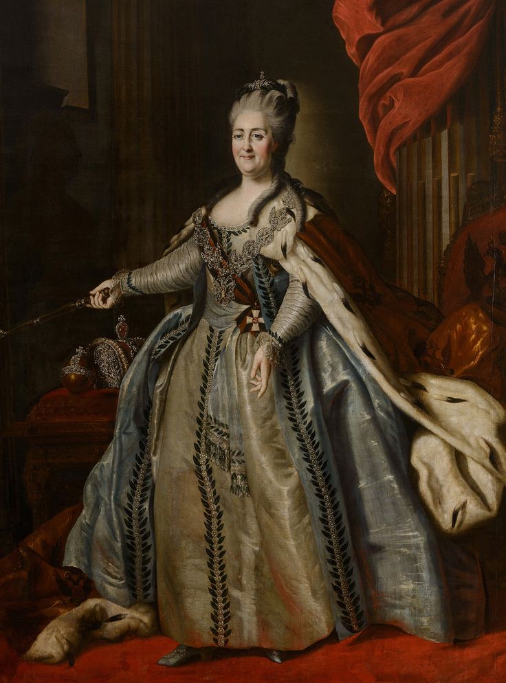 Например, в 1782 году – в честь празднования двадцатилетия вступления императрицы на престол. Тогда же был учрежден орден Святого Владимира, собственно, и изображенный на том же портрете приколотым к горностаевым мехам.