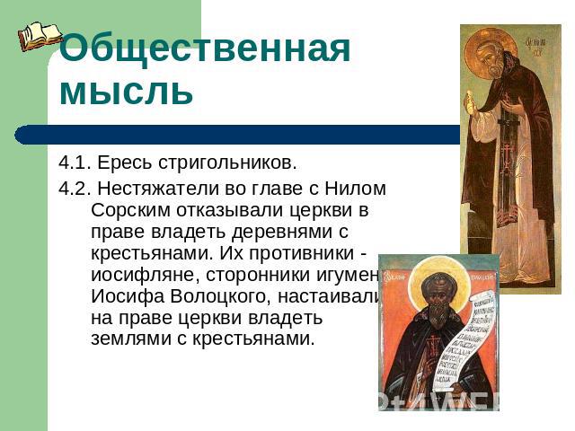 См. также: базилик III; церковный совет; Даниил, митрополит; дионисий; Иван III; иудействующие; православие; владельцы и невладельцы