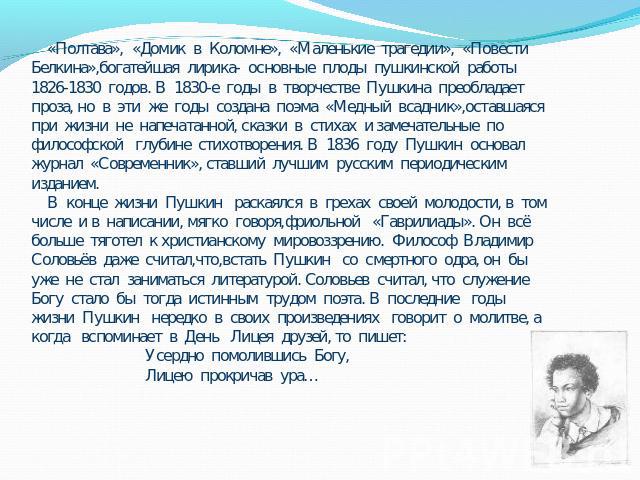 Каковы же историко-психологические предпосылки создания «маленьких трагедий»? С помощью каких художественных средств и литературных приемов Пушкину удалось достигнуть драматического накала и пронзительного лиризма? Каково значение этих произведений в литературно-историческом процессе?