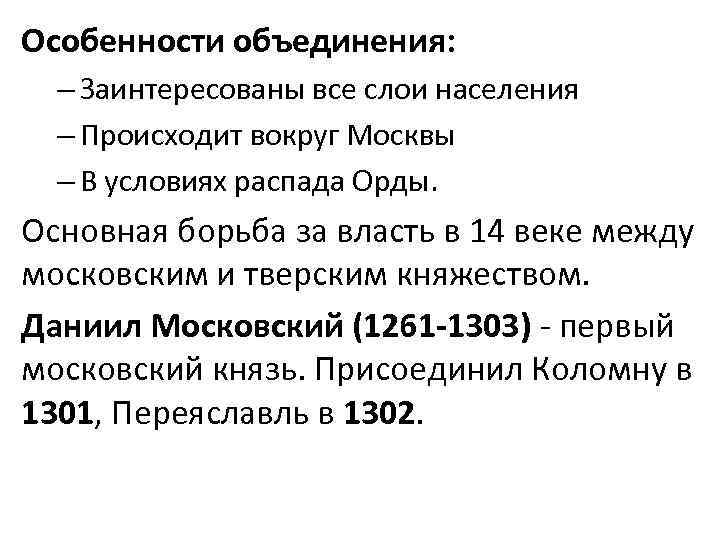 Именно вокруг Москвы и Московского княжества постепенно начался процесс объединения русских земель.