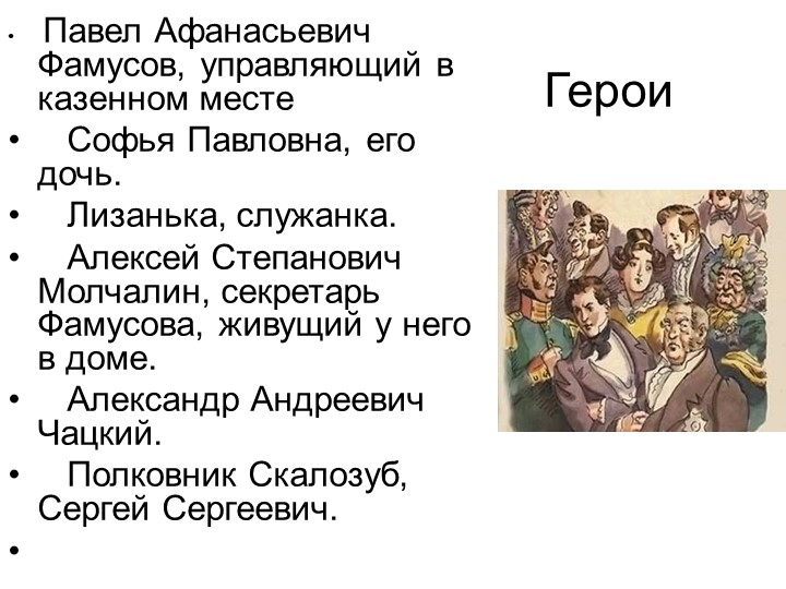 Фамусовское общество в комедии А. Грибоедова «Горе от ума», главные герои
