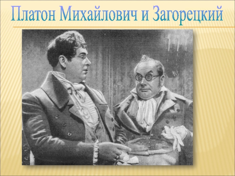 Чета Горичей. Властная и непреклонная Наталья Дмитриевна подчинила себе осторожного, открытого, доброжелательного Платона Михайловича. Горич и «горечь»-омофоны, что вызывает соответствующие ассоциации. Но в этой фамилии можно выделить корень «гор», и тогда откроется смысл фамилии Загорецкий: за Горичами, прячущийся за ними.
