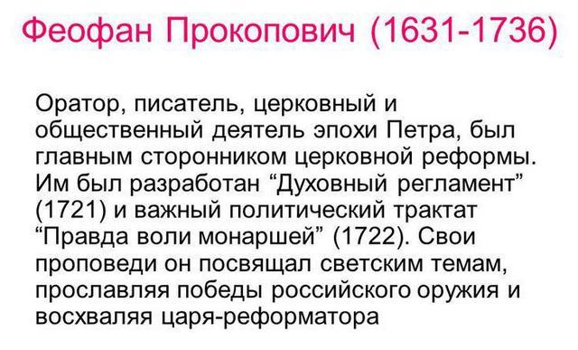 Феофан Прокопович – русский писатель, философ, богослов, сподвижник царя Петра I. Известен научными трудами в разных областях науки а также просветительскими проповедями.