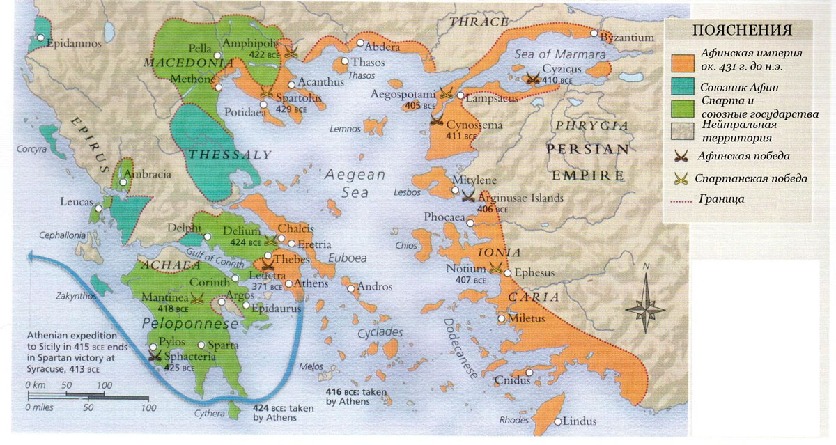Повествование Фукидида охватывает первые 20 лет конфликта, который окончательно завершился в 404 г. до н.э. (Почему повествование неполно, неизвестно; оно было продолжено Ксенофонтом, который освещает последние семь лет войны в своем Hellenica .) Ряд источников трений вызвал боевые действия, в частности вмешательство Афин в ссору между Коринфом (союзником Спарты) и ее колонией Коркирой, но настоящей причиной конфликта, по мнению афинского историка Фукидида, был рост Афин к величию, что заставило спартанцев опасаться за свое положение.