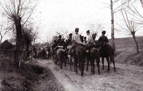 Русские казаки въезжают в деревню. Галиция. Первая мировая война.