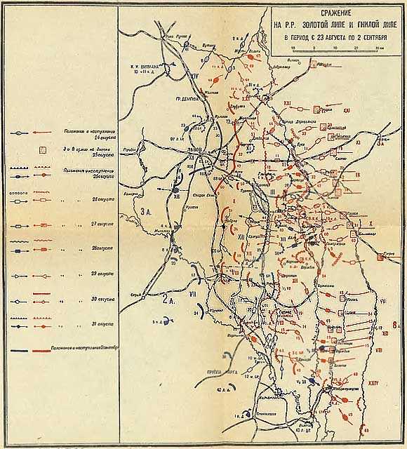 2(15) августа главнокомандующий армиями Юго-Западного фронта отдал приказ войскам фронта о переходе в наступление 10(23) августа. 4-я армия наносила удар из района Люблина на Перемышль, с задачей отрезать группировку противника от Кракова; 5-я армия из южной части Холмской губернии наносила удар на линию Мосциска ‒ Львов. Главный удар должны были нанести 3-я и 8-я армии на Львовском направлении.