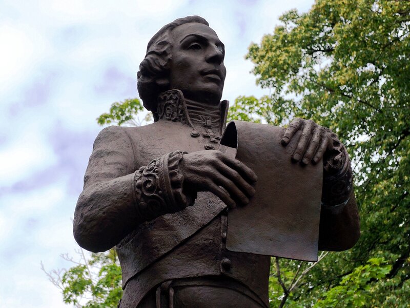 Некоторые ученые считают Александра Сергеевича Грибоедова первым настоящим поэтом Золотого века русской литературы. Будучи видным дипломатом и послом России в Персии, Грибоедов наиболее известен одной театральной пьесой под названием «Горе от ума» (1824 г.), которая до сих пор часто ставится в русских театрах. Грибоедов трагически погиб в 1829 году в Тегеране после того, как разъяренная толпа напала и разгромила там русское посольство. Его тело было обезглавлено и брошено, а позже опознано только по травме, полученной на старой дуэли. Когда через некоторое время останки Грибоедова перевезли в Тифлис, процессия случайно встретила его друга и соратника – самого Александра Пушкина, путешествовавшего по Южному Кавказу.