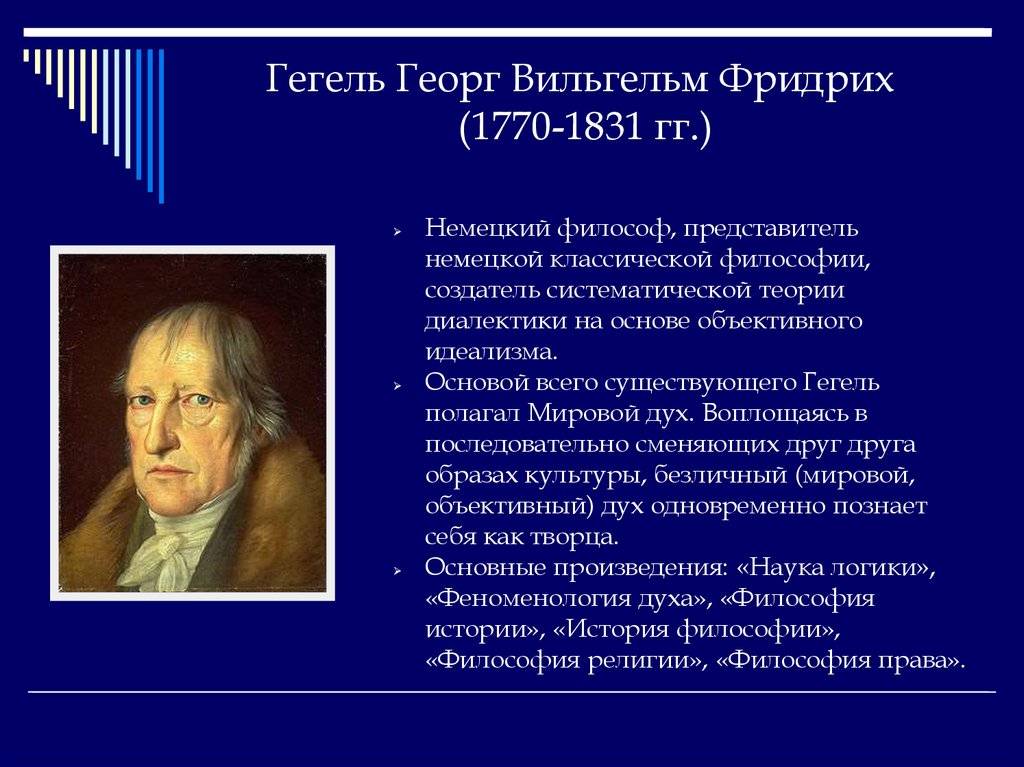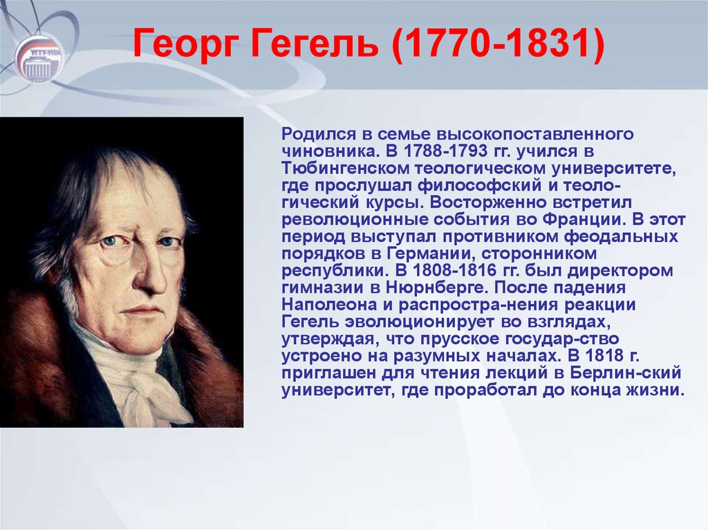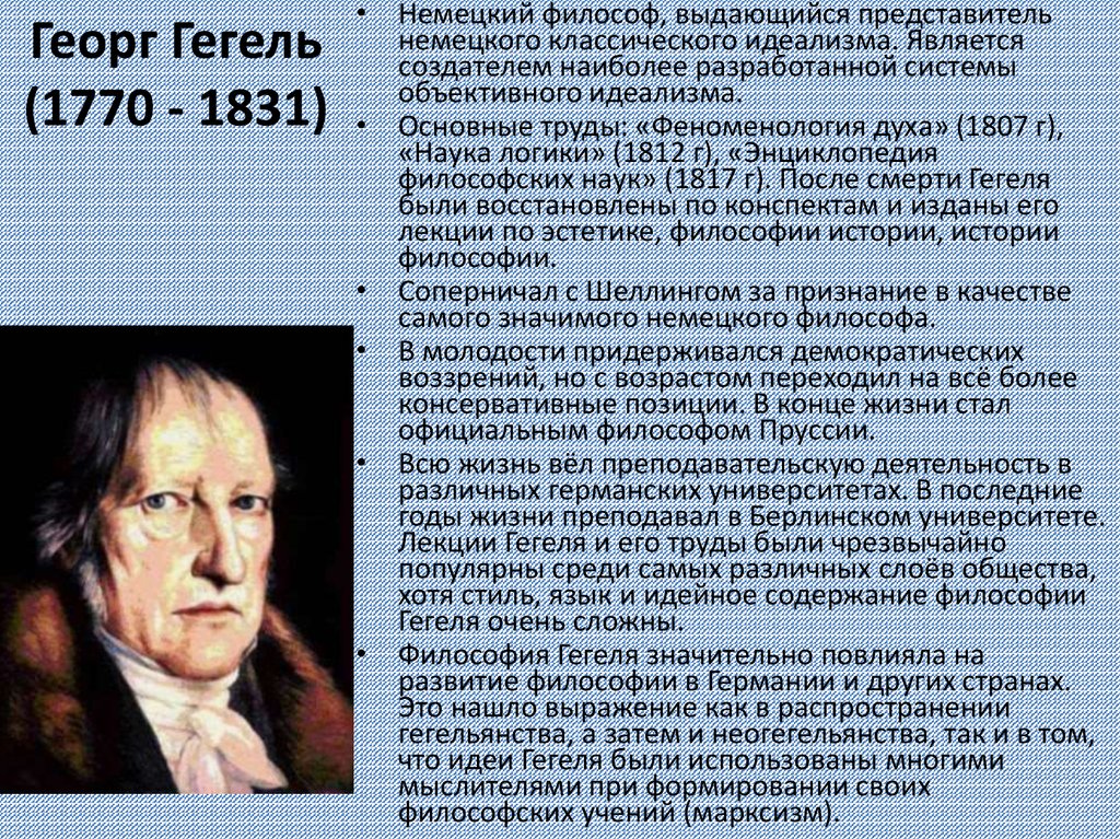 Гегель по праву считается одним из величайших немецких мыслителей, вознёсших немецкую философию на невиданную высоту. Многие исследователи считают, что именно Гегель довёл до ума, начатую Кантом идею.