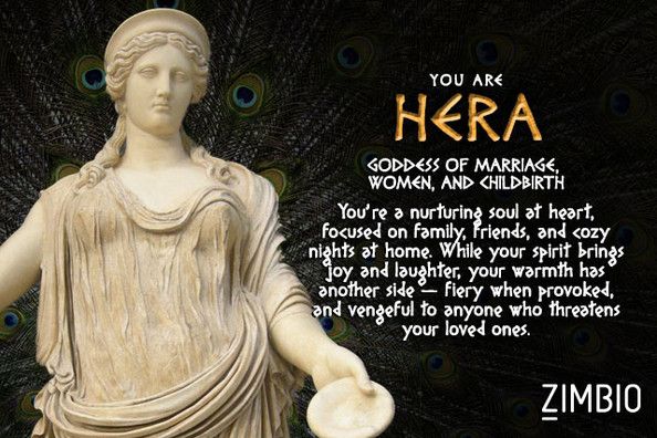 Великая богиня Гера, жена эгидодержавного Зевса, покровительствует браку и охраняет святость и нерушимость брачных союзов. Она посылает супругам многочисленное потомство и благословляет мать во время рождения ребенка.