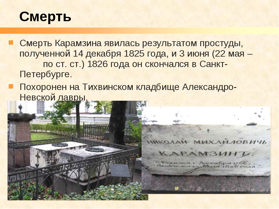 Новый император старался поддерживать историка. Будучи тяжело больным, Карамзин обратился к Николаю I с просьбой вернуть из ссылки Пушкина, и император уступил просьбе историографа. 22 мая 1826 г. Николая Михайловича не стало.