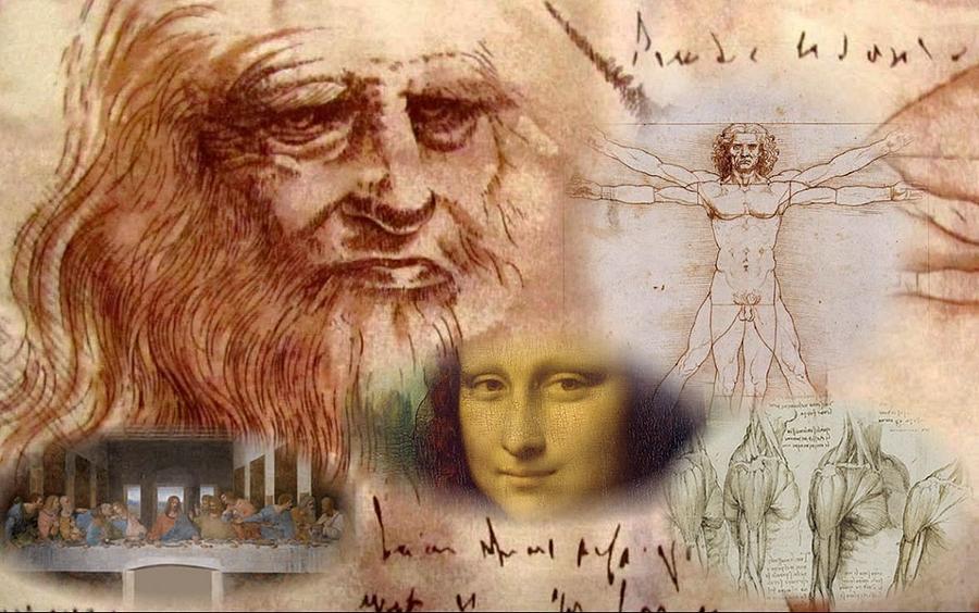 1503–1519) и Тайная вечеря (1495–1498). Его рисунок Витрувианского человека (ок. 1490 г.) также стал культурной иконой. Леонардо иногда считают изобретателем танка, вертолета, парашюта и летательного аппарата, среди других транспортных средств и устройств, но более поздние ученые оспаривают такие утверждения. Тем не менее, записные книжки Леонардо свидетельствуют об остром уме, и его вклад в искусство, включая методы изображения пространства, трехмерных объектов и человеческой фигуры, невозможно переоценить.