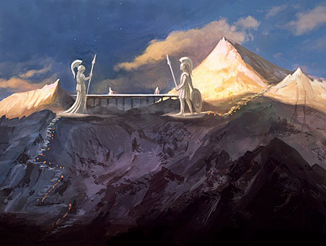 Двенадцать богов обитают в глубоких ущельях, «складках», где также расположены их дворцы. Благословенные боги пировали в Пантеоне, самой высокой вершине Митикаса, которая также была местом их встречи.