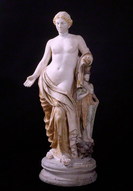 В древнегреческом искусстве Афродита изображена полностью одетой и без черт, отличающих ее от других богинь. Греческие скульпторы V века до нашей эры первыми наделили ее уникальными чертами. Статуя Афродиты Праксителя, вырезанная для книдийцев, была первой обнаженной женщиной в натуральную величину, а позже она стала образцом для эллинистических шедевров, таких как 9-й век.0015 Венера Милосская (2 век до н.э.).